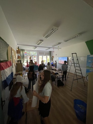 Nie zabrakło też stoisk kulturowych, na których uczniowie prezentowali ciekawostki o wybranych krajach: ich tradycjach, kuchni i zwyczajach. Były flagi, prezentacje multimedialne, a nawet degustacje tradycyjnych przekąsek z różnych stron świata!