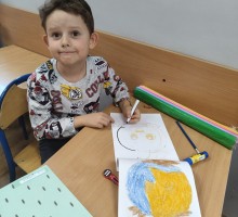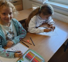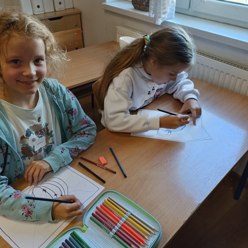 Pierwszoklasiści poznali ciekawą technikę kalkowania obrazków za pomocą kredek. Z ogromnym zaangażowaniem i radością przenosili wzory na papier, obserwując, jak spod ich rąk powstają coraz bardziej precyzyjne rysunki. Ta prosta, a zarazem magiczna metoda sprawiła, że każdy mógł poczuć się jak prawdziwy artysta!