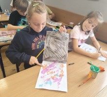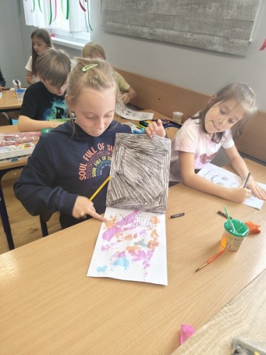 Na zajęciach kreatywno-plastycznych uczniowie klas I–III mieli okazję odkrywać nowe techniki i rozwijać swoje artystyczne talenty.