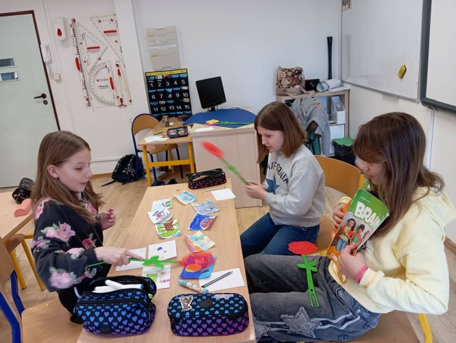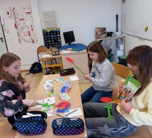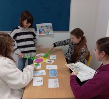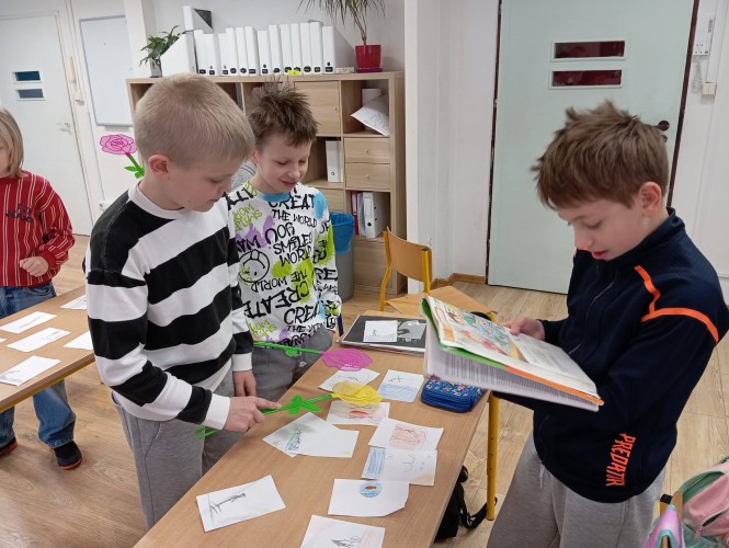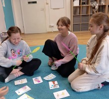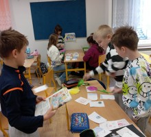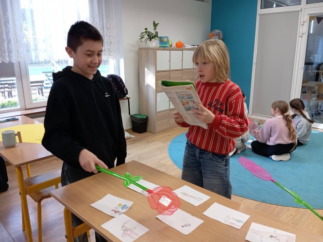 Uczniowie klasy 4a utrwalają umiejętność budowania zdań z czasownikiem „can”, korzystając z gry językowej „Snap it!”. Podczas zabawy uczniowie ćwiczą tworzenie zdań opisujących różne umiejętności i czynności, np. I can swim, She can dance czy We can play football.