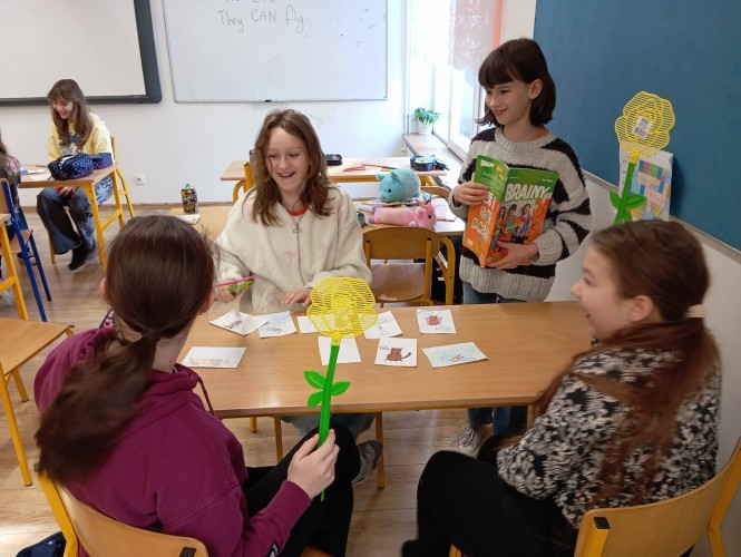 Gra pozwala w atrakcyjny i angażujący sposób rozwijać kompetencje językowe, a jednocześnie uczy refleksu, koncentracji oraz współpracy w grupie. Uczniowie z dużym zaangażowaniem reagują na pojawiające się karty, starając się jak najszybciej poprawnie ułożyć zdanie z wykorzystaniem czasownika „can”.
